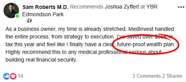 The results? Consistent portfolio growth, optimised tax outcomes, and a clear, repeatable process that delivers measurable results — year after year. When you book your strategy session with us, we show you exactly how the MedInvest system works behind the scenes, and how it can be customised to build serious long-term wealth — just like we’ve done for ourselves.